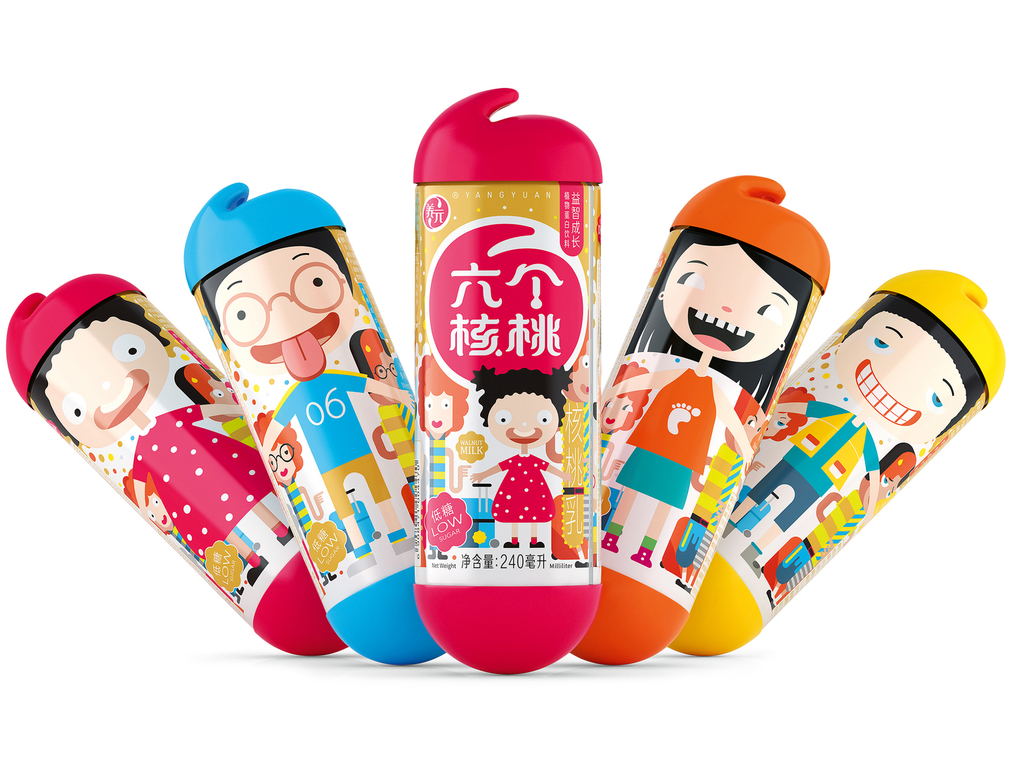 The Six Walnuts beverage for kids showcases four graphics of mischievous kids, painted in four shiny candy colours. The design of the bottle is complemented by a cap that looks like a solid number six. It thus sets out to enhance brand recognition, while also assuring that the product is hygienic and ready to be consumed at any time. With the cap functioning as a hook, the bottle can be easily hung on a kid’s backpack, for example. After consuming the beverage, the empty container may be matched with a hemispherical pedestal and turned into an entertaining tumbler.