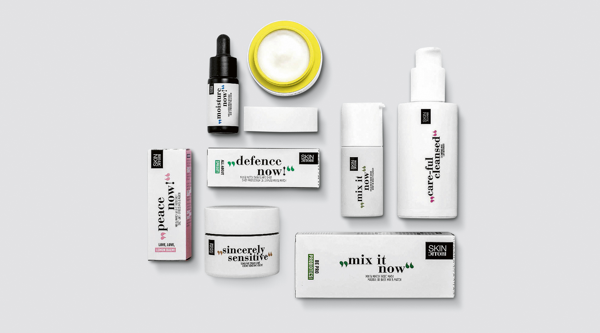 Skinbiotic is a brand of skincare products which combines prebiotics and probiotics with the ingredients of green superfoods. The target group consists of health-conscious, active people who, via the Skinbiotic app, can easily get in touch with skincare professionals and thus receive specific, customised products. Communicating openness and honesty, the visual identity serves as an interface between the online and offline world. The packaging has a fresh and young look, which is achieved through the interplay of a basically simple appearance and some eye-catching elements.