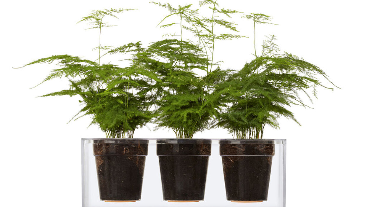 Unkonventionell und innovativ stellt die Gestaltungsidee dieser hängenden Pflanzgefäße das Gärtnern buchstäblich auf den Kopf. Ein neuartiges Bewässerungssystem versorgt die Wurzeln der Pflanzen mit genügend Feuchtigkeit, wobei diese einem Wasserbehälter aus Terrakotta kontinuierlich entweicht. Auf diese Weise wird die Erde zu keinem Zeitpunkt gesättigt und es kann somit kein Wasser heraustropfen. Eine Kombination aus Netz und abschließender Seitenabdeckung verhindert zudem das Herunterrieseln von Blumenerde. Sky Planter wurde für eine vielseitige Anwendung im privaten und öffentlichen Raum entwickelt. Durch die Bepflanzung der Decken erschließt sich ein neuer Begrünungsbereich, ohne dass dabei wertvoller Wohnraum geopfert werden muss. Die reizvolle Hängebegrünung könnte zudem eine neue Ausgestaltung urbaner Architektur ermöglichen. Die glasig glänzenden Keramikgefäße sind in drei unterschiedlichen Größen erhältlich und werden in Handarbeit gefertigt.