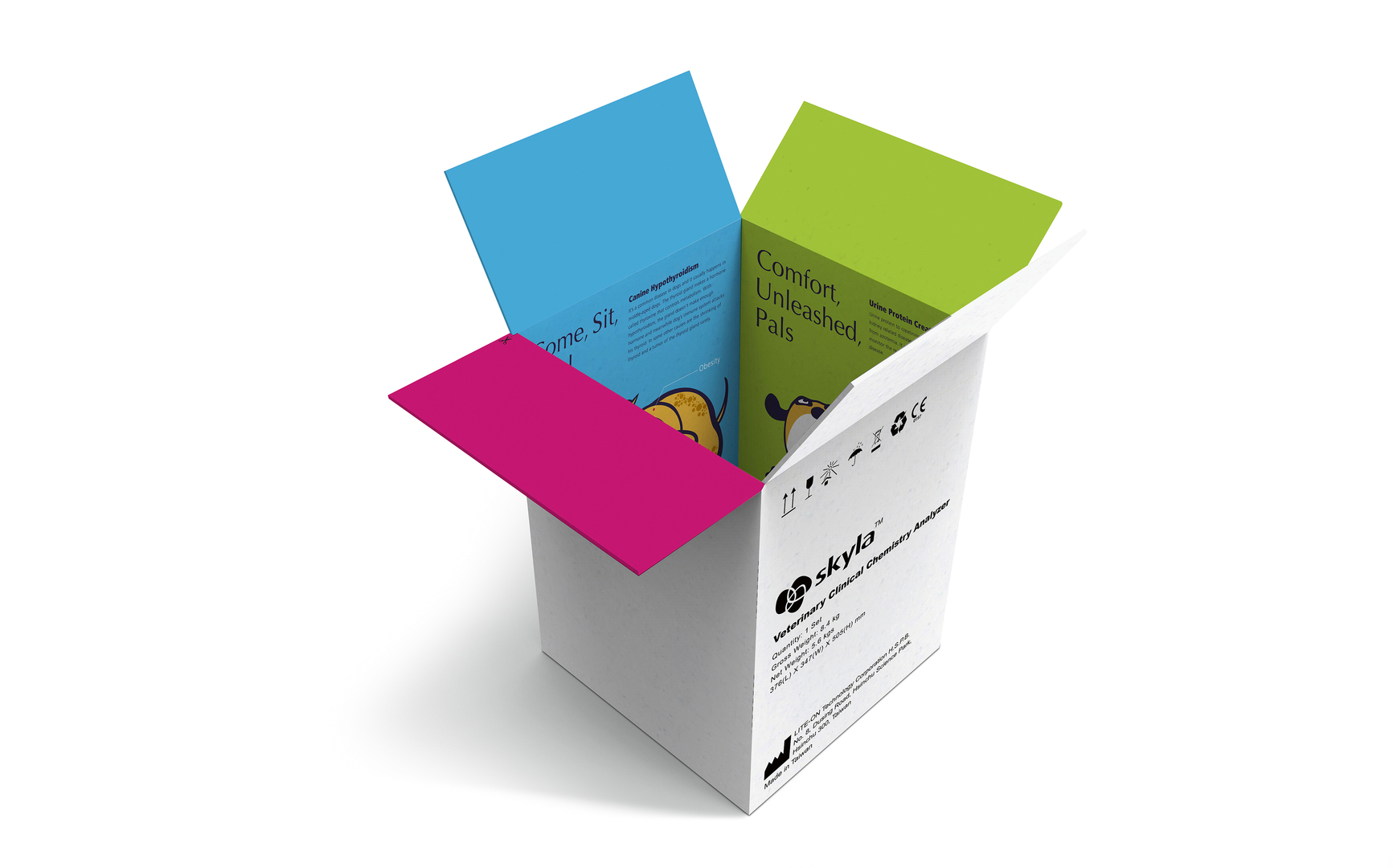 The skyla Pets’ Health Education posters are part of a brand concept for the company skyla, intended to offer new opportunities in medical science and impetus in the area of veterinarian healthcare. In the sense of advanced communicated material between breeder and veterinarian, the brand concept aims to extend packing material lifespan and to inform about pet diseases through educational posters, together with an operation guide printed inside the packaging box. The design features a cartographical drawing and a tender tone in neutral colours to convey a warm feeling.
