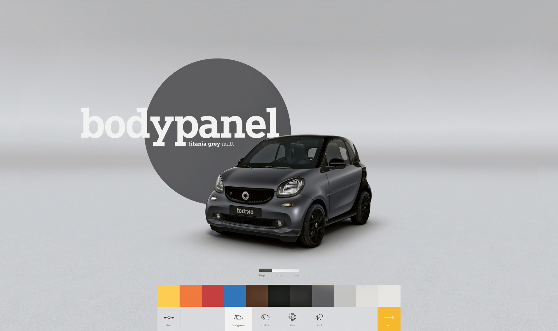 The Daimler brand “smart” stands for innovation, urbanity, functionality and utmost joy. Since this will be complemented by e-mobility as a feature, it has been reflected in the development and design of their innovative and interactive retail experience. With its intuitive-to-operate touch interface, it de­livers sophisticated user guidance and realistic 3D animations that enable customers to gain insights on product features among e-mobility and all key configuration options at events such as premium showrooms, pop-up stores, and roadshows.