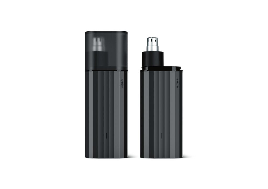 Dieser wasserfeste Nasenhaartrimmer ist ähnlich wie ein Feuerzeug gestaltet und hat ein vergleichbar kleines Format. Die geraden Linien des Aluminiumgehäuses werden von einer geriffelten Struktur betont. Durch die halbtransparente Schutzkappe schimmert das silberne Kopfteil hindurch. Der Scherkopf ist für verschiedene Nasenlochgrößen geeignet und zum Schutz der Naseninnenwand einziehbar. Ein geräusch- und vibrationsarmer Kleinstmotor im Inneren erhöht zusätzlich den Anwenderkomfort.