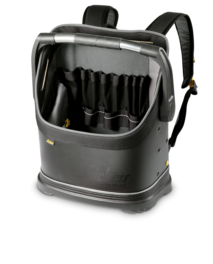 Die Werkzeugtasche Snickers bedient sich innovativer Materialien und Formen, um ein praktisches und stabiles Modell zu schaffen. Tragbarkeit und Ergonomie standen im Fokus der Entwicklung. So besitzt sie einen robusten Boden, um das Werkzeug im Wagen zu transportieren, und einen komfortablen Griff für das Tragen von Hand. Mit den verstellbaren Trägern kann die Tasche bei Bedarf auch auf dem Rücken transportiert werden, die asymmetrische Formgebung verbessert das Tragen am Körper und sorgt für ein stabiles Gleichgewicht. Die offene Konstruktion ohne Deckel gewährleistet einen schnellen Zugriff auf den Inhalt und die Möglichkeit, auch längere Werkzeuge mitzuführen.