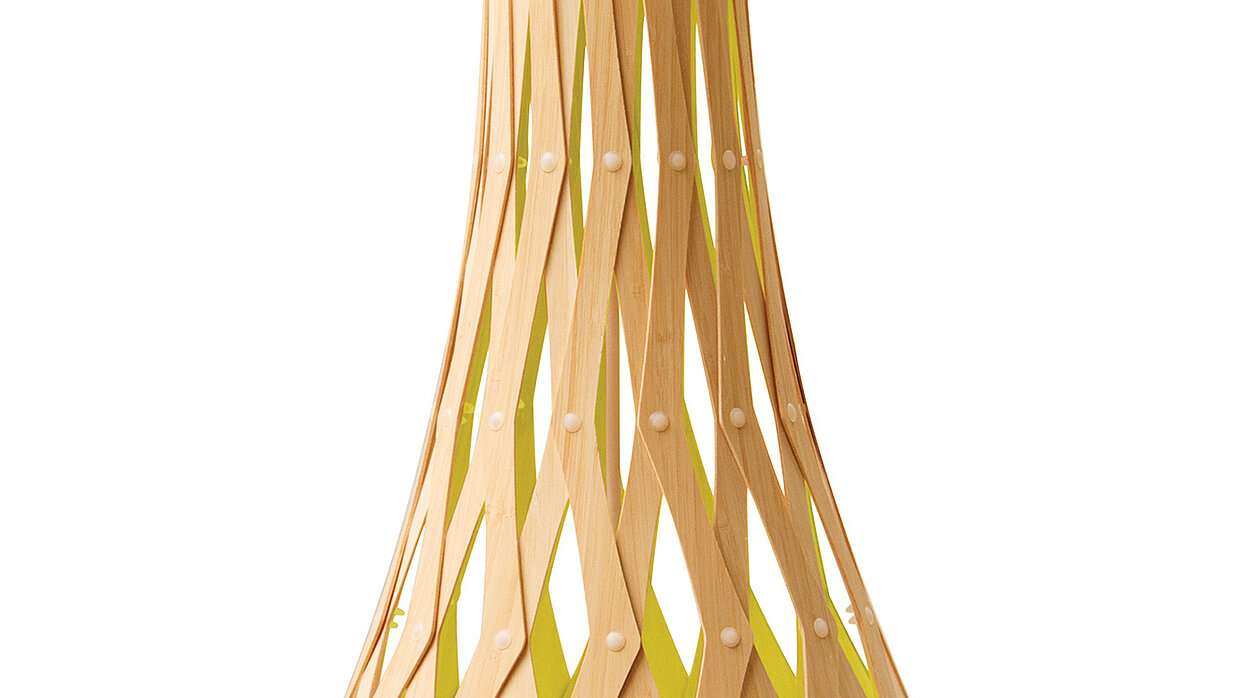 Snowflake ist eine Pendelleuchte aus FSCzertifiziertem Bambusholz. Da die Leuchte in Einzelteile zerlegt verschickt wird, reduziert sich das Frachtvolumen auf ein Minimum. Zudem wird dem Käufer das Erfolgserlebnis einer leicht zusammenbaubaren Beleuchtung ermöglicht. Einsteck-Klemmen aus Nylon halten die Einzelteile zusammen, wodurch die Leuchte während des Zusammenbauens automatisch ihre Form annimmt. Inspiriert von einer Reise in die Antarktis entstand die in drei Größen erhältliche Leuchte.