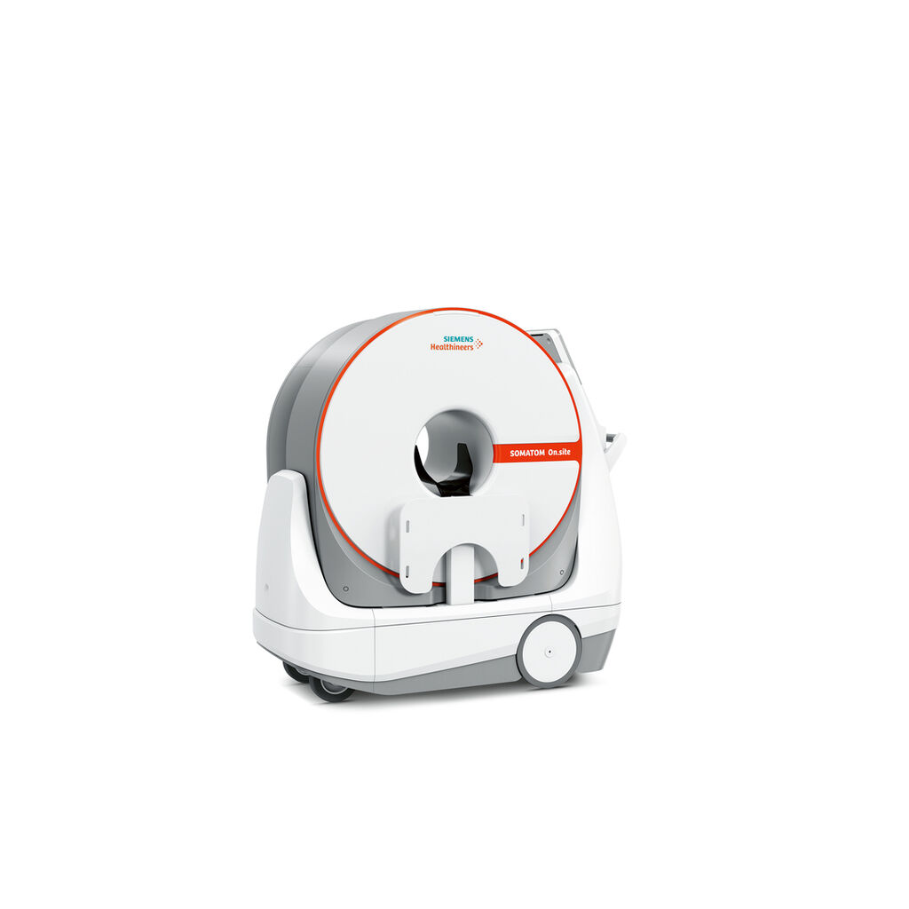 Der Kopf-CT-Scanner SOMATOM On.site kombiniert auf innovative Weise die Beweglichkeit eines mobilen Röntgengeräts mit der Bildqualität eines CT-Scanners. In seiner minimalistischen Form und wegweisenden Funktionalität auf den mobilen Einsatz ausgerichtet, ist dieses Gerät gut proportioniert gestaltet und kann leicht bewegt werden. Als durchdachte Plattform bietet er vielfältige Möglichkeiten für die Optimierung der Abläufe im klinischen Alltag.