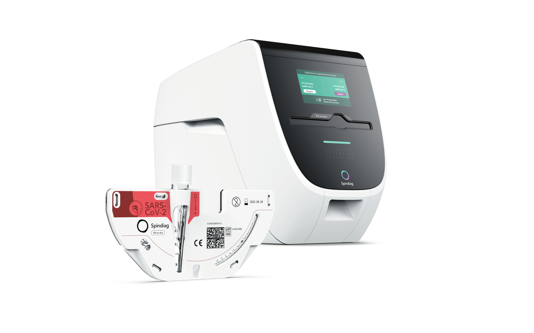 Das Schnelltestsystem Spindiag Rhonda ermöglicht den Nachweis von bakteriellen und viralen Krankheitserregern, einschließlich SARS-CoV-2. Durch die vertikale Ausrichtung und die vorgewölbte Form benötigt das Gerät nur wenig Stellfläche und findet auch bei beengten Raumverhältnissen Platz. Gestaltungselemente wie die grafische Benutzerschnittstelle und der Discschacht orientieren sich an der Ästhetik moderner Unterhaltungselektronik und bieten ein intuitives Nutzererlebnis.