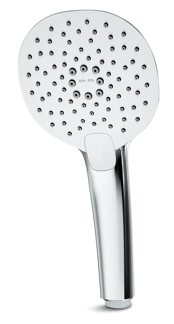 Die Handbrause Spirit V2.0 vereint drei Strahlarten in dem von einer harmonischen Linienführung gekennzeichneten Kopf. Die zwischen Griff und Brause positionierte Drucktaste regelt den Wechsel vom natürlichen Spray zur vitalisierenden EnerJet- oder zur entspannenden Spray+Massage-Funktion. Die einzelnen Düsen sind so konzipiert, dass weiche Übergänge zu der ganz in Weiß gehaltenen Strahlfläche entstehen – so zeigt die Handbrause besonders gute Hygieneeigenschaften.