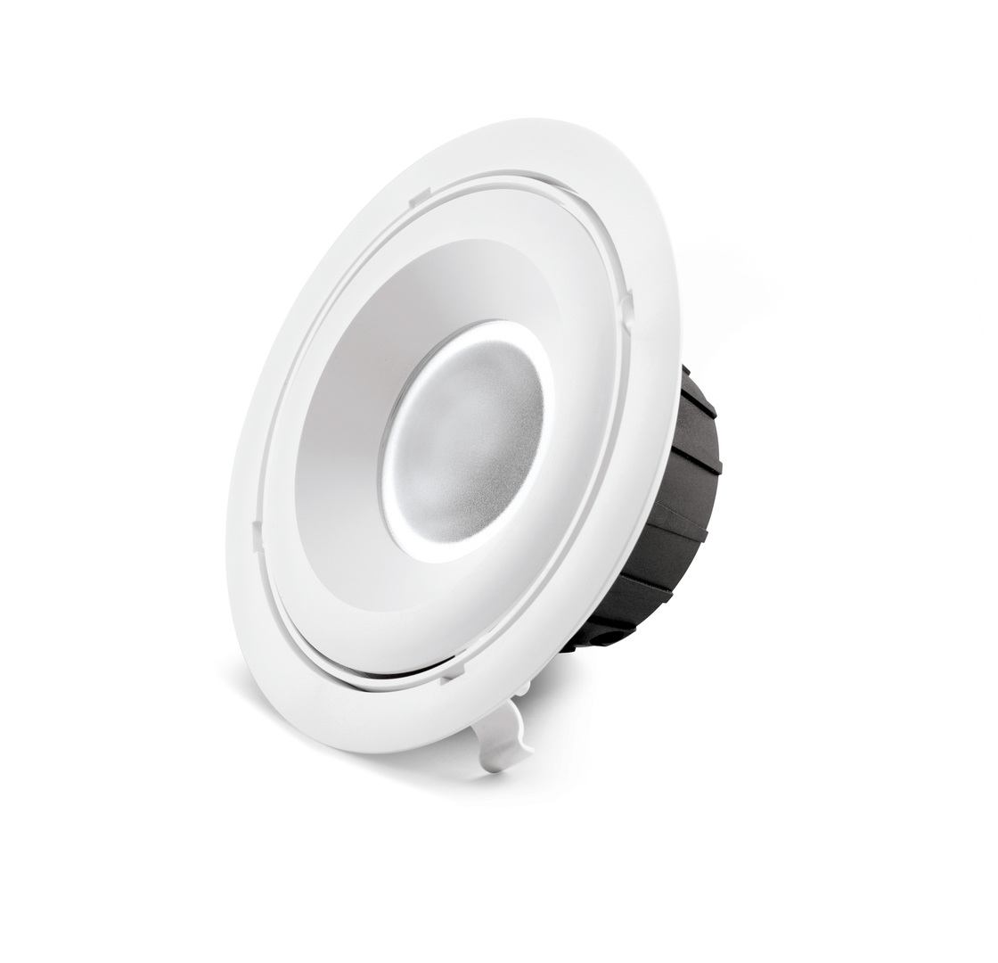 Hervorstechendes Merkmal des dimmbaren LED-Strahlers 4S ist sein ausgefeilter Schwenk-Mechanismus, der es ermöglicht, die Leuchte in unterschiedlichen Winkeln zu neigen. Darüber hinaus hat der Strahler innovative Elemente wie einen eingebauten Treiber und ein unsichtbares Thermal Management System. Der 4S lässt sich einfach mit einem Schnappverschluss installieren und hat eine Lebenserwartung von 35 Jahren.