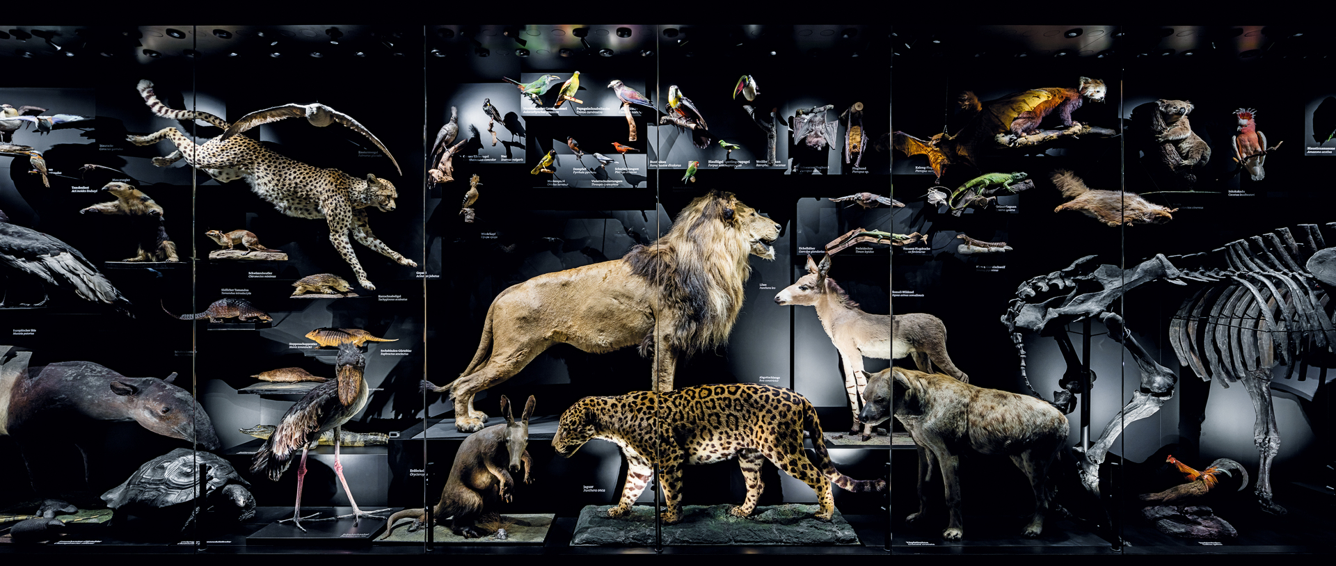 For the permanent exhibition presenting the 250-year-old collection of the Staatliches Naturhistorisches Museum in Braunschweig, Germany, three additional exhibition spaces were developed along with a new foyer with cloakroom, lounge and museum store. Staged as a “royal” chamber of wonders, the treasury addresses the historical beginnings of natural scientific collecting. The discovery area features a large, 13-metrelong display that encourages playful interaction between the visitors and the native animal world. Inspired by 19th-century presentation practices, hundreds of anatomical specimens are shown in floor-to-ceiling racks.