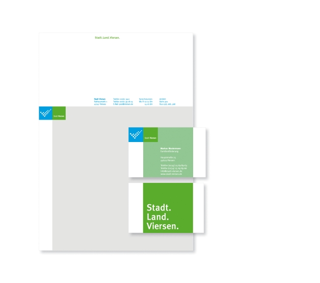 This logo – as an element of the new corporate design approach of the German city of Viersen – illustrates the connection between urbanity and nature. Accordingly, the newly designed logotype consists of two squares in blue and green standing side by side. Uniting to form a stylised letter “V” are 15 dots that can be viewed as a check-sign pointing upwards, while the dots are also indicative of Viersen’s status as county seat. In their reference to this new corporate identity, the dots thus also elucidate and illustrate the network concept and the idea of centrality.
