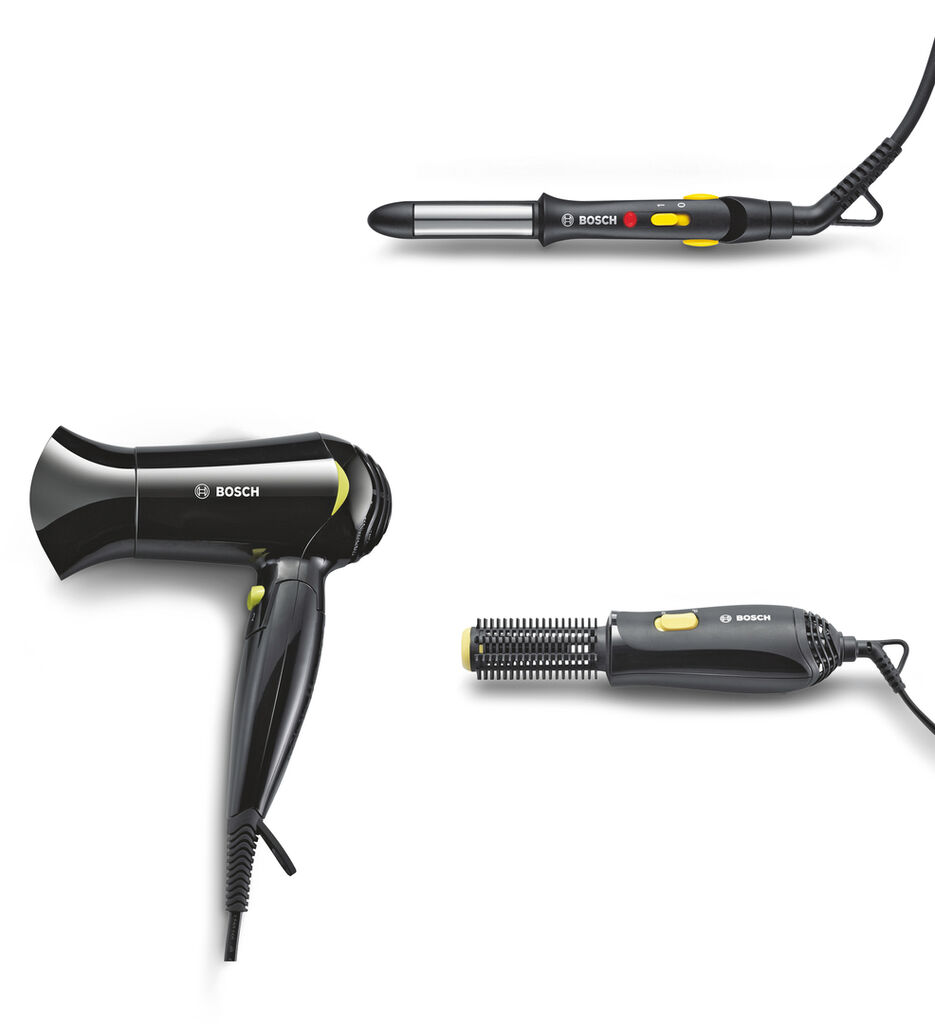 Das kompakte und handliche Design macht dieses Haarstylingset zum idealen Reisebegleiter. Dank der Möglichkeit, auf unterschiedliche Stromspannungen umzuschalten, sind Haartrockner, Haarglätter und Lockenstab weltweit einsetzbar. Durch die gut austarierte Gewichtsverteilung und ergonomische Griffgestaltung mit partieller Textur-Oberfläche liegt jedes Gerät angenehm und sicher in der Hand. Wichtige Bedienelemente sind durch farbliche Akzente hervorgehoben und zeichnen sich durch präzise Rastung aus, was die Handhabung erleichtert.