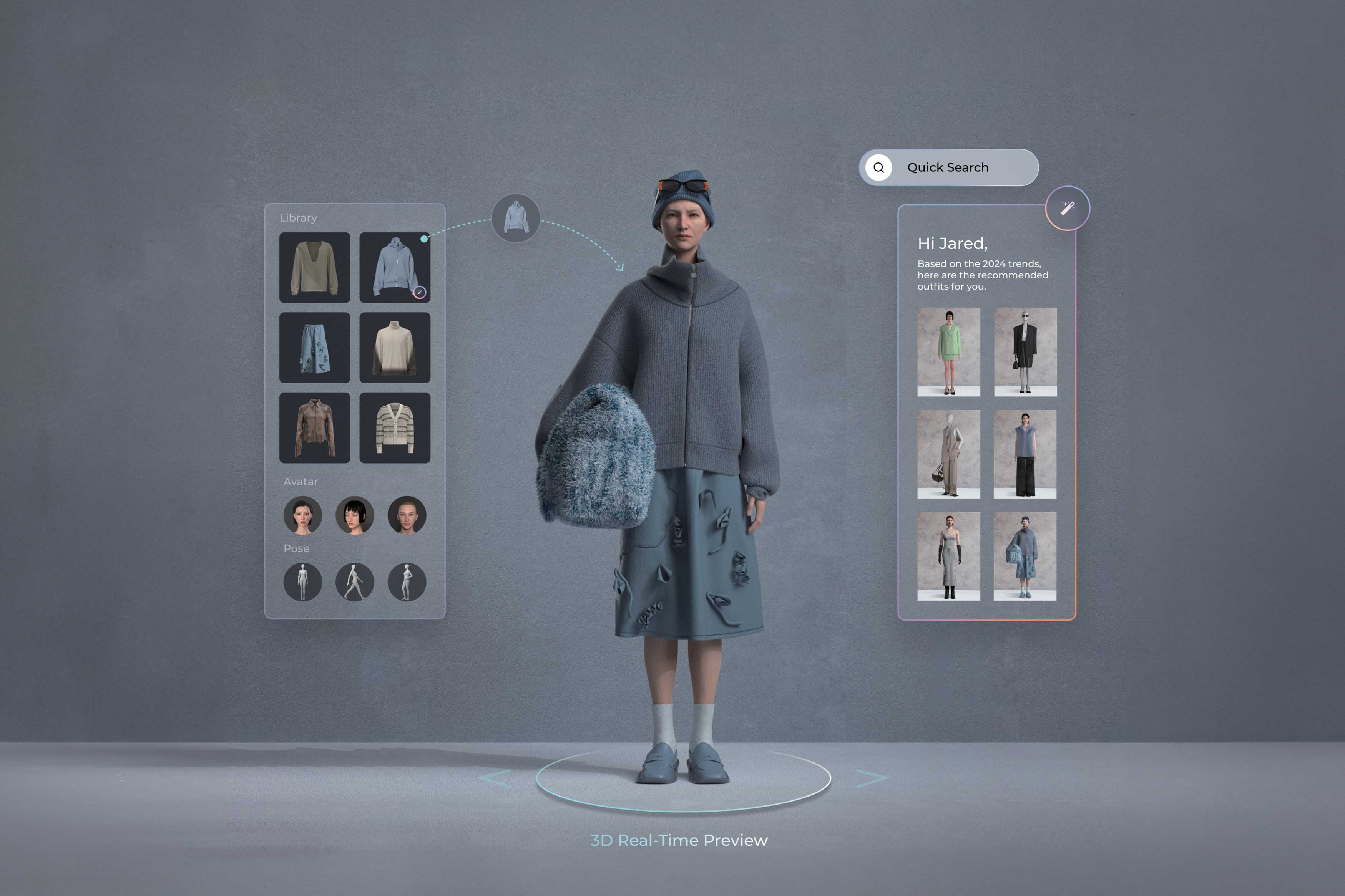 Style3D MixMatch uses AI to facilitate clothing coordination, leveraging big data on trends for design inspiration. Its simulation engine enables rapid model face swaps, clothing colour changes, and body customisation, boosting efficiency. The system reduces carbon footprint by minimising physical samples, saving up to the equivalent of planting 7972 trees per cotton shirt to foster sustainable development in the fashion industry.