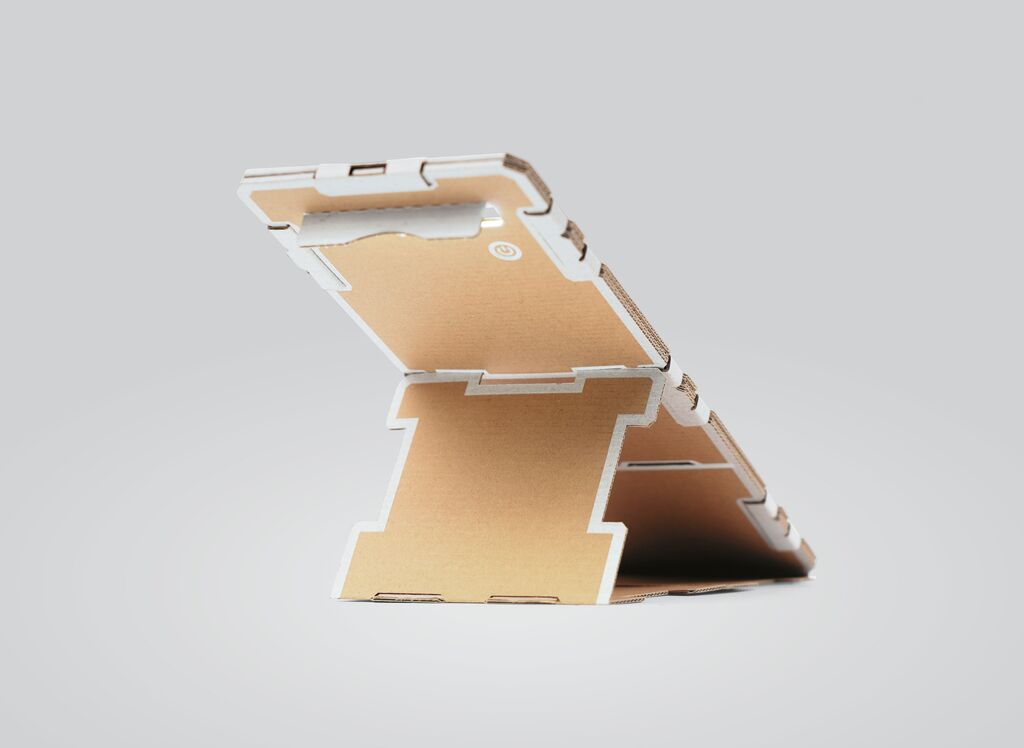 Thanks to a multi-layer construction made of corrugated cardboard, this design is both product and packaging and thus fulfils the demands of a zero-waste concept. SUNLOOP is a solar-powered lamp with its individual components placed between layers of cardboard. The outer layer can be folded out for a stable stand. Lying flat, the luminaire hardly takes up any space. The volume required to transport a commercially available luminaire of the same performance is equivalent to that of 20–30 units of this model. In the interest of economical use of materials, the operating instructions are printed on the box.