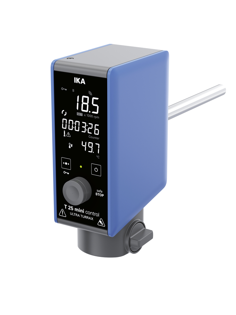 Die Dispergiergeräte der Serien T 18 und T 25 sind kompakte, leistungsstarke Instrumente zur Probenzerkleinerung. Mit ihren geringen Abmessungen sind sie ideal für Labor- und Hochschulbetrieb. Eine klar strukturierte Bedienoberfläche, Werkzeugerkennung mittels RFID-Technologie und Netzwerkschnittstellen vereinfachen die Arbeitsabläufe und erhöhen die Arbeitssicherheit. Die zugunsten einer maximalen Kompaktheit gewählte minimalistische Gestaltung sorgt für ein kraftvolles, qualitativ hochwertiges Gesamtkonzept.