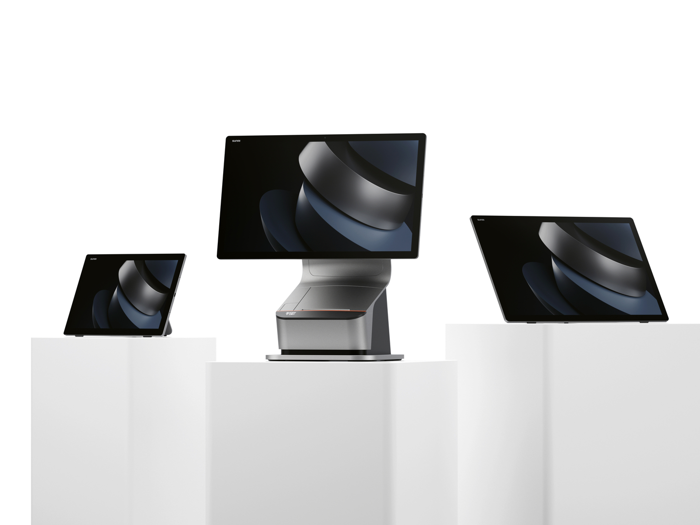 Die T3 PRO Serie umfasst POS-Geräte für eine verbesserte Kundenkommunikation. Ein Plug-in-Sekundärdisplay sorgt für hohe Flexibilität, die Konstruktion von Basis und Ständer schafft einen schwebenden Look und ermöglicht eine organisierte Kabelführung. Der aus einem Stück gefertigte Aluminiumständer ist dünn, stabil und so konzipiert, dass er für eine optimale Anpassung an die Augenhöhe um 125 Grad gekippt werden kann. Der randlose HD-Bildschirm mit hochtransparenter, fingerabdruckabweisender Beschichtung ermöglicht seidig glatte Berührungen.