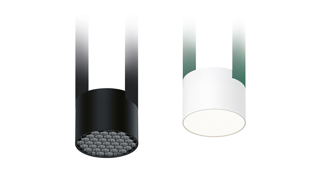 Mit sanft geschwungenen Konturen ergänzt Tangram-Tact die Leuchtenfamilie auf emotional ansprechende Weise. „Ihre elegante Formensprache weckt die Aufmerksamkeit der Betrachter und erlaubt eine Raumbeleuchtung, die einladend wirkt“, befand die Jury. Unter Verwendung der markentypischen Nylonbänder in gängigen Farbausführungen vermag die Leuchte visuelle Akzente in unterschiedlichen Bereichen zu setzen. Die Beleuchtung ist raffiniert fokussiert, sodass z. B. Sitzbereiche definiert oder Korridore ausgeleuchtet werden können. Die tief im Schirm sitzende COB-Lichtquelle mit einer nach innen reflektierenden Linse mindert die Blendung und erreicht einen hohen Beleuchtungskomfort.