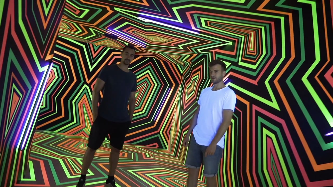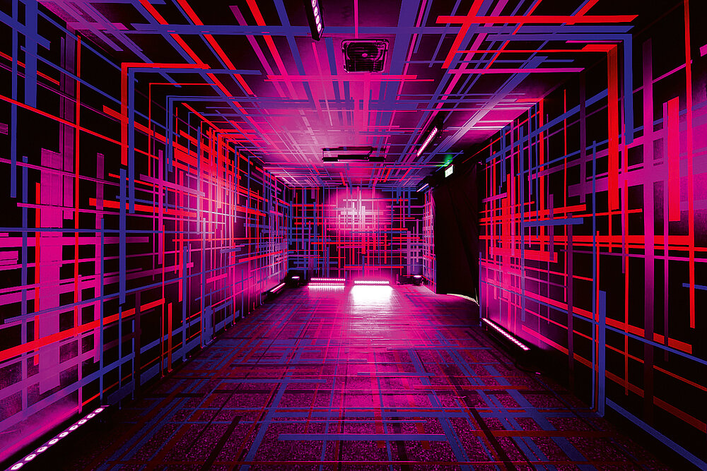 Tape art is art made out of adhesive tape. It is a new art form that has grown rapidly over the last ten years. The Berlin-based Tape That Collective designed an exhibition space of 380 sqm inside the Songshan Cultural and Creative Park in Taipei. Within the exhibition, they created eight tape art installations and exhibited over 40 tape paintings created by collectives. Working on-site, all artists included the spatiality of the exhibition space in their themes ranging from camouflage and illusion to a mirror house and a night-view corridor. Moreover, special sounds and light installations turn the event into an immersive art experience. Easy to adhere, tear and change – with sophisticated patterns and skills, the lines and colours of approximately 7,000 cuts of tapes transformed the otherwise plain and little exciting space into a fancy place of great aesthetic value and emotional depth.