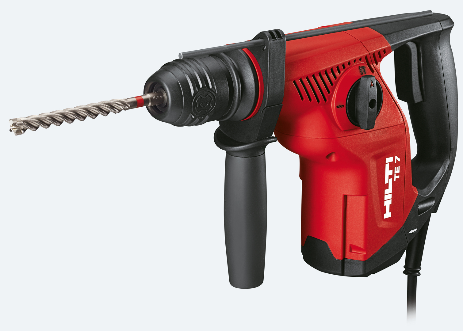 Der Bohrhammer TE 7 überzeugt durch seine Einsatzvielfalt. Hauptgebiet ist das Bohren von Dübellöchern und Durchführungen bis 28 mm Durchmesser in Beton und Mauerwerk. Zusätzlich steht eine drehmomentstarke Bohrfunktion für Holz- und Metallanwendungen zur Verfügung. Abgerundet wird das vielseitige Einsatzspektrum durch die Meißelfunktion, mit der Korrekturarbeiten durchgeführt werden können. Durch den ergonomischen D-Griff ist der Bohrhammer optimal für den komfortablen Dauereinsatz geeignet.