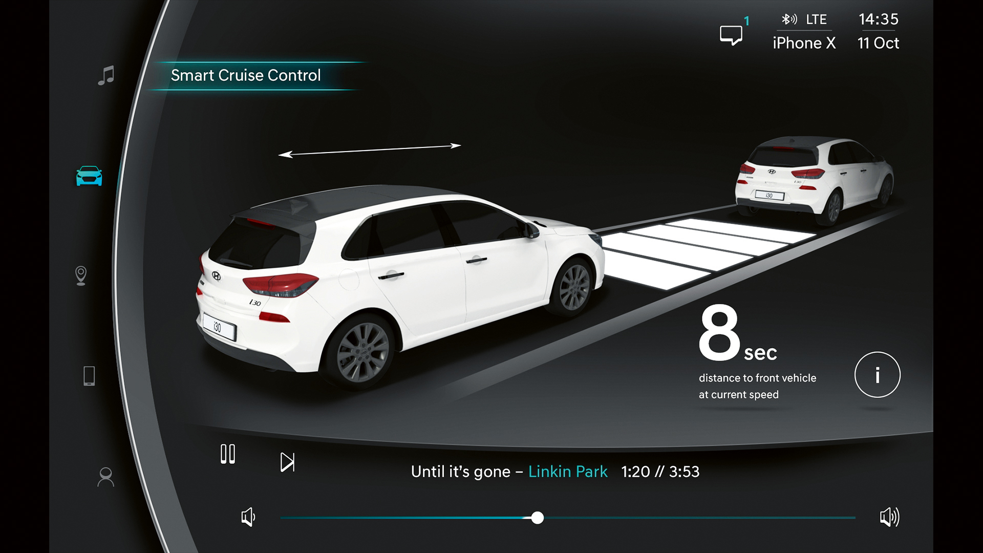 With the HMI design of the Tech Fair Car 2018, the Korean car manufacturer Hyundai was pursuing the goal of creating a 3D viewing experience that increases driving pleasure while ensuring that the driver’s concentration stays on the road. It was developed for two steering wheel displays, a 2D Haptic Display and for the Multi-Layer Display with a 3D effect resulting from the superimposition of two display levels. The HMI design is highly user-oriented and characterised by the harmonious interaction of the technical components.