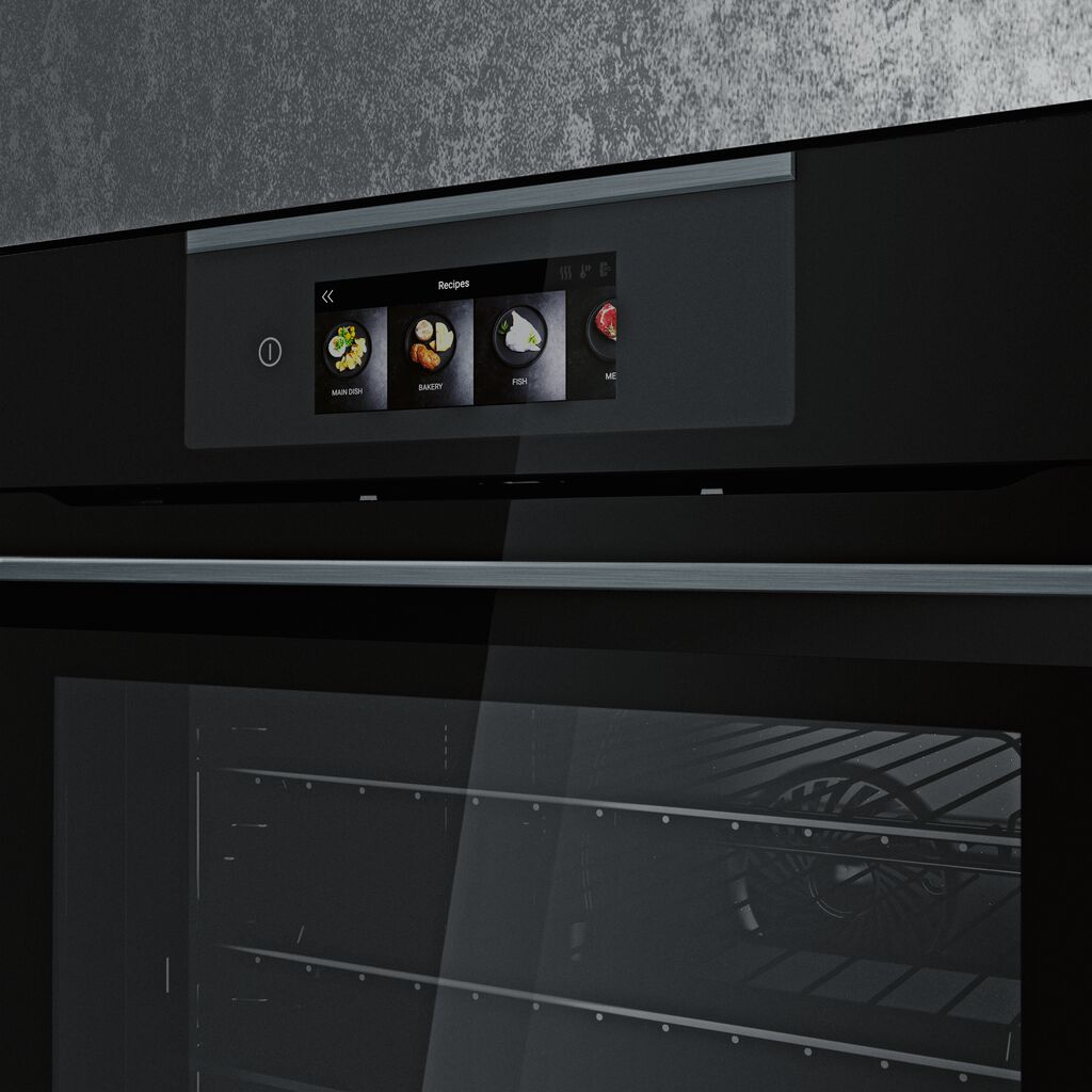 Markantes Merkmal der Einbauöfen der I-Touch-Serie-6 ist ihr großzügiges TFT-Display, das mit seiner innovativen Touch-Oberfläche ein intuitives Bedienerlebnis bietet. Dank Wi-Fi-Konnektivität lassen sich Kochprogramme und Rezepte direkt am Backofen oder per App auswählen. Zusätzlich kann der Benutzer auf smarte Programme zugreifen wie z. B. U-Create, das die Erstellung eines Rezeptes mithilfe eines mehrstufigen Programms ermöglicht. Ein Bratensensor misst die Temperatur im Inneren des Gargutes und passt Gartemperatur und -zeit für optimale Ergebnisse automatisch an.