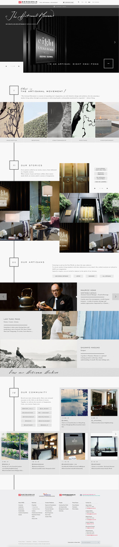 New World Development is a diversified holding group based in Hong Kong. The company’s vision is defined by “The Artisanal Movement”, a journey that injects craftsmanship and innovation into its products. The website introduces all of the brand’s projects, group news, the internal and external collaborators’ archive and online public community. The layout structure is clear and direct, formatted into a section-by-section progression, presented in a free-flow artistic manner, where the content flows into place as visitors discover the page. Each section is marked by a minimalistic road sign marking the section number drawn on the page as visitors arrive. The founder’s handwritten titles are incorporated onto the page to personalise the journey.
