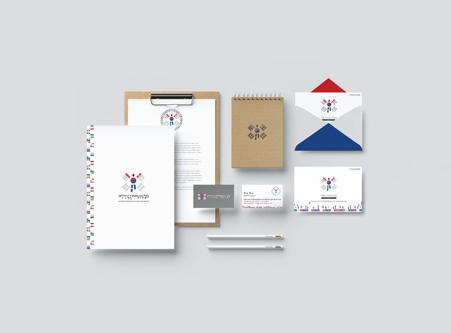The Korean Association of National Team Members was established in 2011 by current and former Korean athletes. The organisation supports youth education through sports activities and hosts about 60 sports events. The new corporate design adopts the national flag of South Korea: the blue and red circle in the middle of the logo symbolises the harmony between Yin and Yang while the four trigrams represent air, earth, water and fire. Additional graphic elements in different colours are used to create a vibrant visual identity which has a motivating effect on a broad target group.