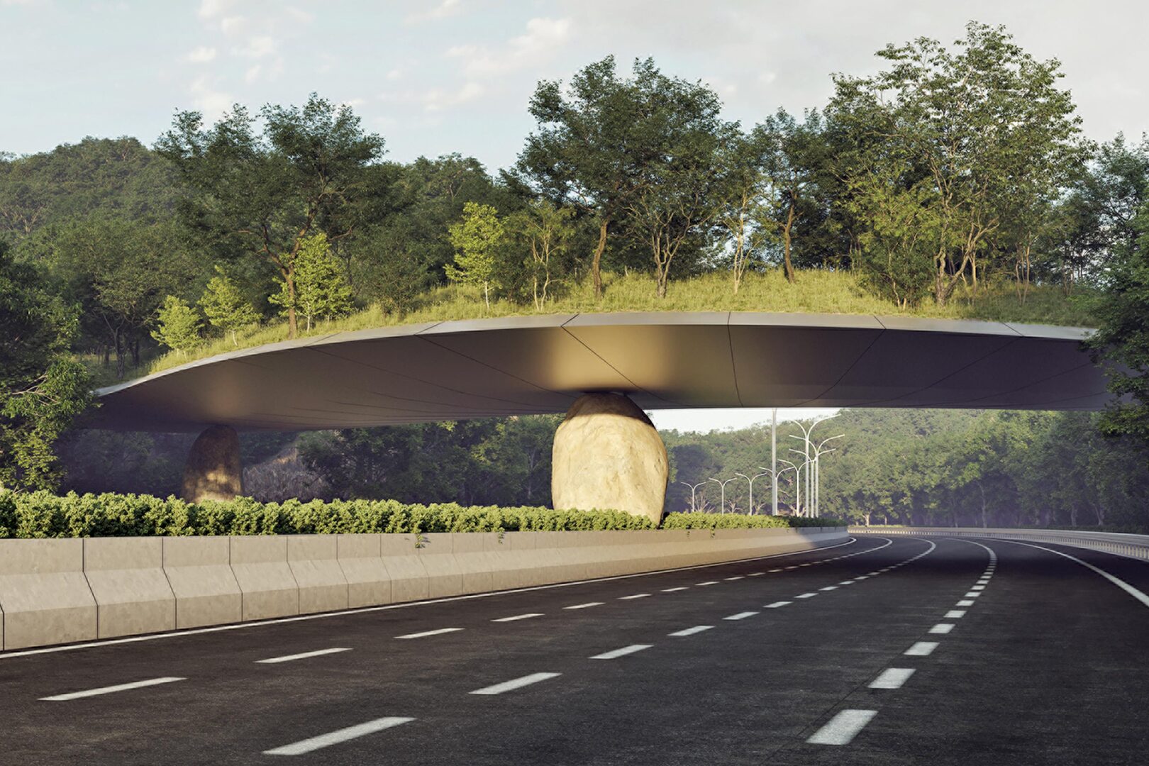 The Serpentine Eco-Bridge takes a sustainable approach, utilising natural resources and eco-friendly construction to minimise its ecological impact while maximising functionality and aesthetic appeal. The serpentine shape of this bridge allows for a maximum length within the buildable area while limiting disturbance to the local animal and plant habitat. This design approach also provides pedestrians with a more extended natural and educational experience while crossing the bridge. This eco-bridge has several distinguishing features that set it apart as an innovative design. The sectional design has a wedged form that is ideal for plant depth and rainwater collection. The centre-column structure reduces the impact on the ground during construction, preserving the natural ecosystem. The materials and manufacturing processes used in The Serpentine Eco-Bridge were carefully chosen to prioritise sustainability and environmental friendliness. Lastly, green-concrete — a sustainable alternative to traditional concrete — is used for the structure to reduce the carbon footprint. Red Dot Award: Design Concept | Concept | Public Space