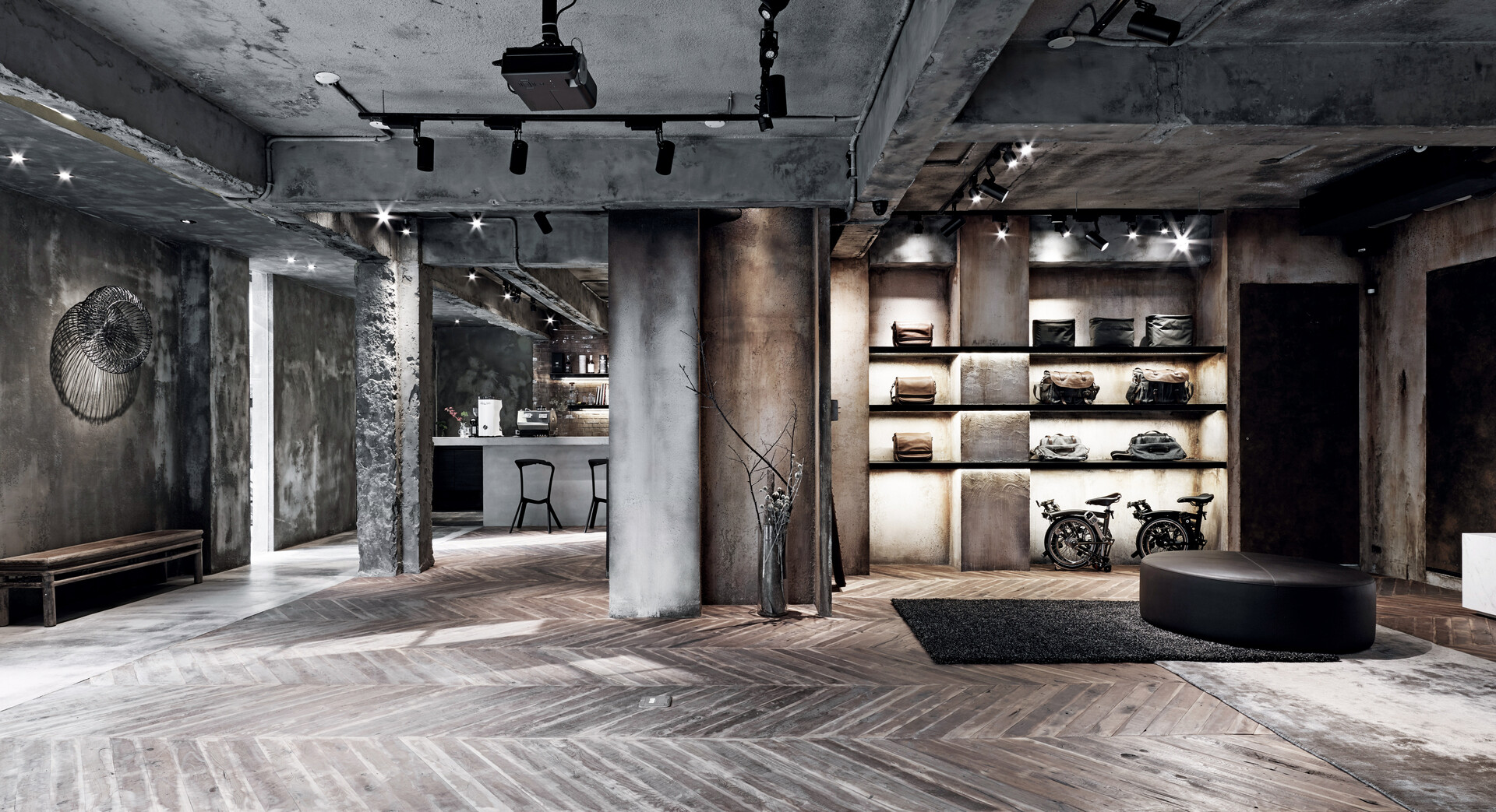 The W Space is a leather products retail store for custom-designed watch straps and backpacks. The minimalist interior atmosphere directs the focus of attention onto the self-sufficient products. A corridor in the middle creates a clear axis and allocation of space: watchstraps are displayed on the left, backpacks on the right. In order to underline the quality and sense of the handmade leather goods, the walls feature cement mixed paint and the floor is collaged with solid wood. Holes on the partial exterior serve as windows to light up the space.