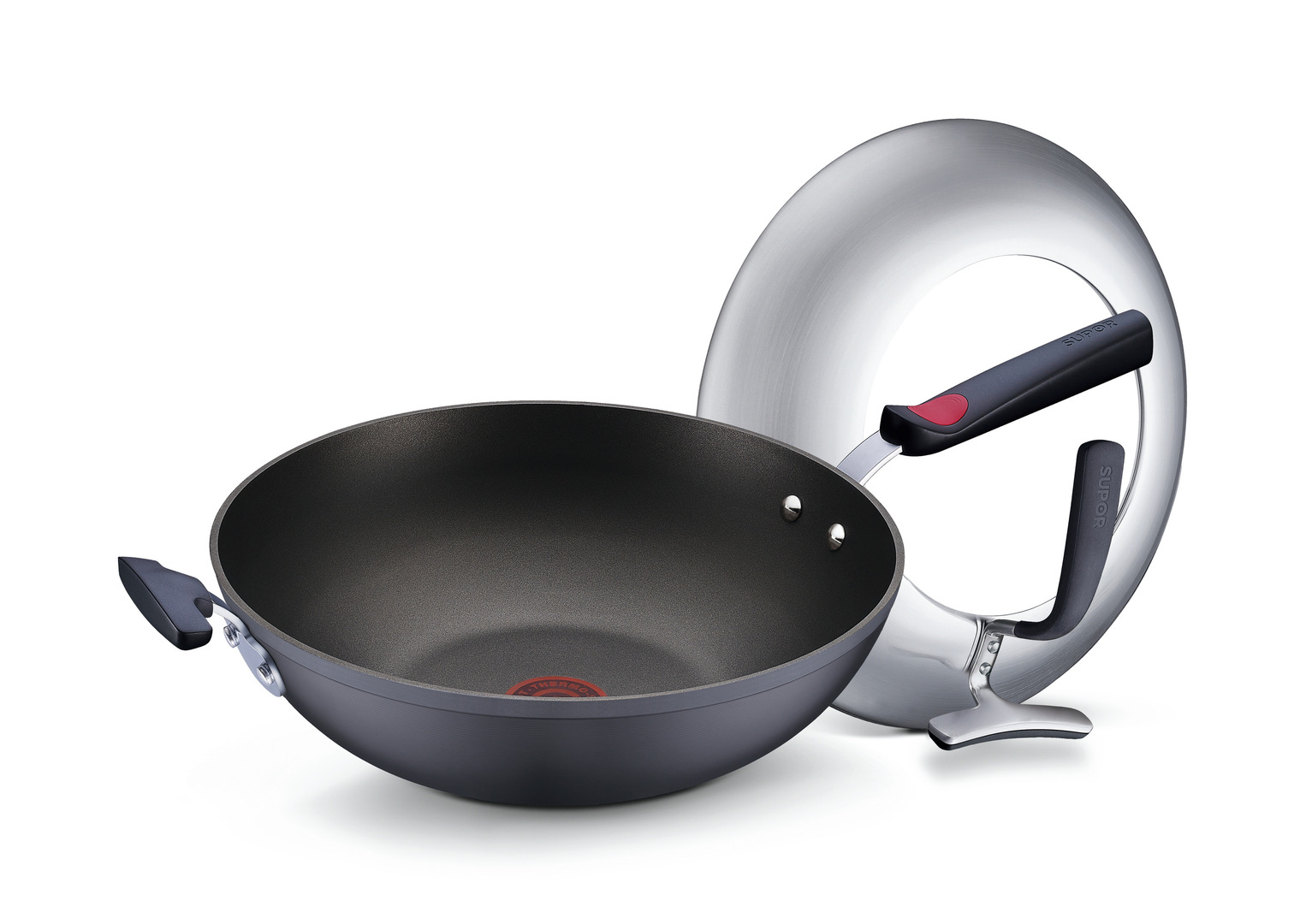 Dieser Wok ist mit einer patentierten Funktion ausgestattet, die mithilfe eines von Hellrot zu Dunkelrot wechselnden Punkts die Kochtemperatur signalisiert. Unter Einhaltung der empfohlenen Temperatur lässt sich Gemüse anbraten, ohne dass dabei giftige Dämpfe aufgrund von Überhitzung erzeugt werden. Die Ergonomie des Griffs schützt vor Verbrühen. Dank der innovativen Standvorrichtung des Deckels sowie seines G-förmigen Rands wird das Abtropfen von heißem Kondenswasser auf die Ablagefläche verhindert. Die Antihaftbeschichtung des Titan-Kristall-Stahls ist langlebig.