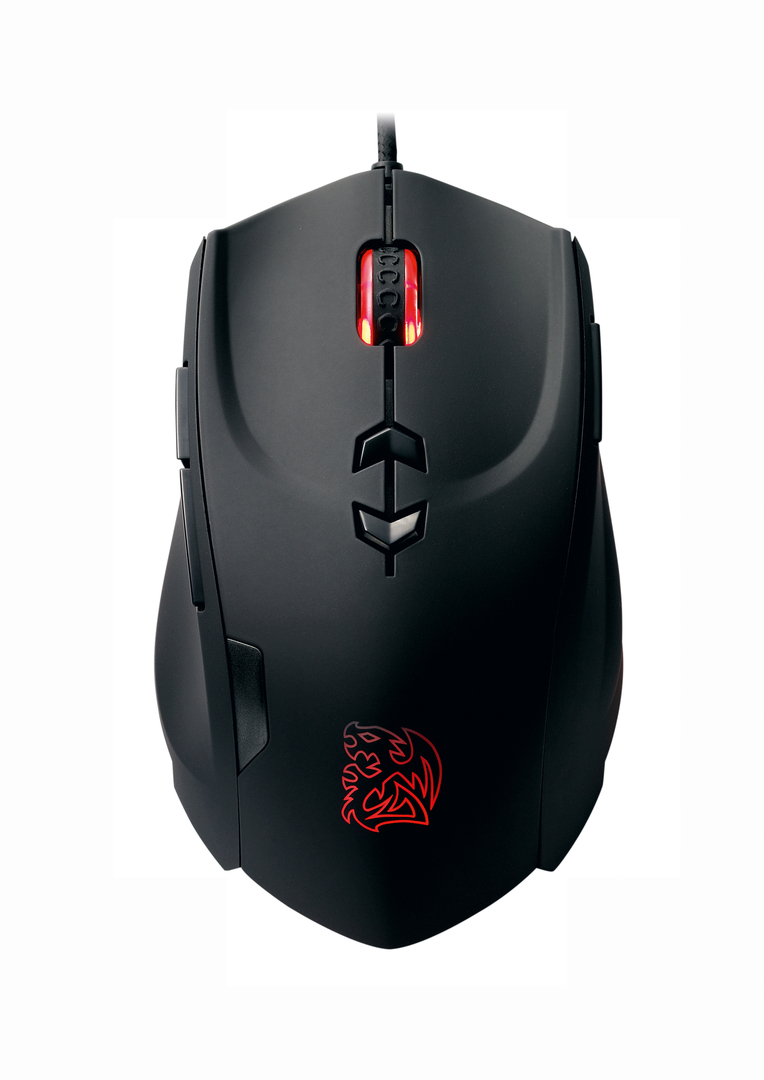 Der Gestaltung der Gaming-Maus Theron liegt das Thema „Kampfdrachen“ zugrunde, das in Logo und Linienführung zum Ausdruck kommt. Es stehen sieben Farben der Beleuchtung zur Auswahl, die sich verschiedenen Bereichen und Profilen zuordnen lassen; die Farbe verändert sich mit der Häufigkeit der Mausklicks. Dank ihrer Gummibeschichtung lässt sich die Maus gut in der Hand halten. Sie wiegt 85 Gramm, bietet dem Anwender aber die Möglichkeit, das Gewicht über fünf zusätzliche Metallgewichte á 4,5 Gramm seinen Vorlieben anzupassen.
