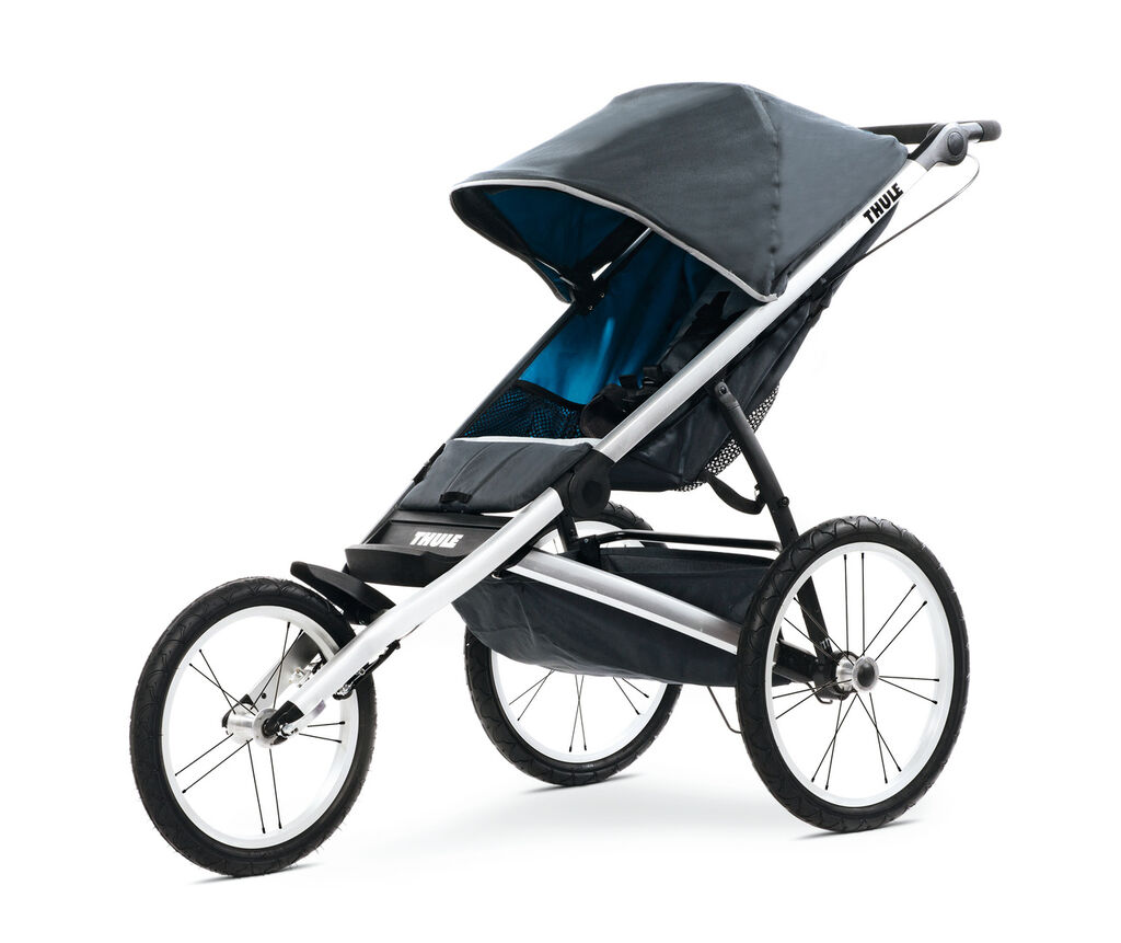 Der aerodynamisch gestaltete Sportbuggy Thule Glide ist ganz auf die besonderen Bedürfnisse aktiver Eltern ausgerichtet. Er bietet viel Beinfreiheit während des Laufens und ist mit einem Gewicht von 9,9 kg angenehm leicht. Dank der 18-Zoll-Laufräder ist zudem der Rollwiderstand gering. Damit das Kind bequem sitzt, ist der Buggy hinten gefedert. Die Sitzfläche ist gepolstert, luftdurchlässig und kann in eine beinahe waagerechte Position gebracht werden. Thule Glide lässt sich einfach mit einer Hand zusammenklappen.