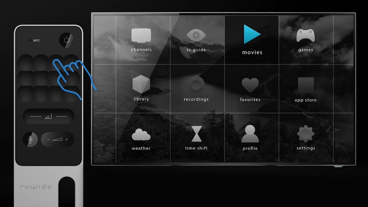 The idea of placing the structure of a user interface in the navigation field of a remote control – in order to close the physical distance between the user and the graphical user interface and thus to synchronise mind and senses – has been realised by the TICTACTILE. system in an outstanding manner. The reduced and elegantly designed interface with tactile operating buttons in a recess configuration allows direct interaction, without having to take the eyes off the screen.