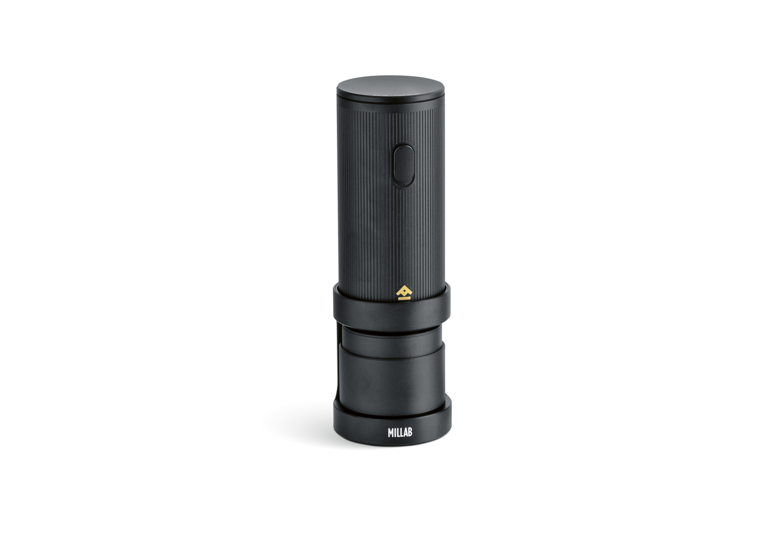 Die elektrische Kaffeemühle Timemore Millab E01 wurde als Premiumprodukt konzipiert. Trotz ihrer kompakten Abmessungen und des geringen Gewichtes entspricht ihre Leistung der einer professionellen Tischmühle. Das Gehäuse wird aus einem einzigen Aluminiumstück gefertigt und ist in den Ausführungen Schwarz und Silber erhältlich. Die sauberen vertikalen Streifen und die zentrierten Auto-Reset-Schiebeschalter verleihen ihr einen schlichten, sauberen Look. Der eingebaute Akku ermöglicht pro Aufladen bis zu 60 Mahlvorgänge.