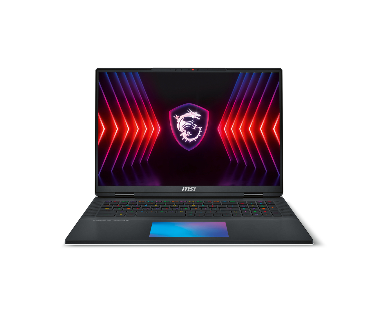 Die bemerkenswerte Gestaltung der Lufteinlässe ist von einem Wirbelsturm inspiriert und verleiht dem Äußeren des leistungsstarken Laptops Titan 18 HX Ähnlichkeit mit einem kraftvollen Motor.