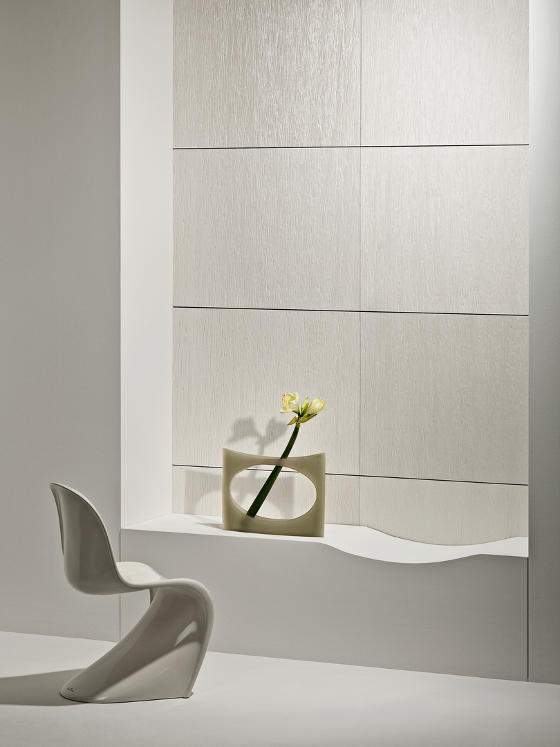 Tiziano Panel ist ein Wand-Paneel (92 x 72 cm) mit textiler Optik für den Einsatz im Einrichtungs- und Objektbereich. Es verbindet herausragendes Textildesign mit einer materialtechnischen Innovation, dem präzisen Abformen textiler Oberflächen durch ein patentiertes Gussverfahren. In bislang unvergleichlicher Genauigkeit werden selbst feinste Webstrukturen auf einem Träger (90% Polyurethan, 10% Glas) abgebildet. Die Übereinstimmung mit der textilen Vorlage führt zu einer gestalterischen Gesamtwirkung, welche die Umsetzung neuer architektonischer Gestaltungskonzepte ermöglicht. Das Tiziano Panel ist formstabil, langlebig und in zehn Farben erhältlich. Sein Gewicht beträgt etwa 3 kg bei einer Stärke von 5 mm.