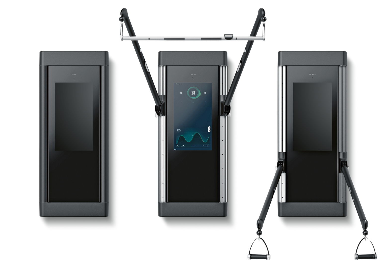 TONAL ist ein neues Krafttrainingsgerät für zu Hause oder das Büro. Es arbeitet auf Basis einer elektromagnetischen Maschine, die durch intelligente Software und maschinelles Lernen gesteuert wird und eine gleichmäßige, dynamisch wechselnde Widerstandskraft bereitstellt. Die beiden Arme des flachen, an der Wand hängenden Geräts schwenken aus ihren vertikalen Schienen aus und lassen sich nach allen Seiten bewegen, um das Training zu ermöglichen – angefangen vom Latziehen im Stehen über Kniebeugen bis hin zu seitlichen Brustflys. Die den Widerstand steuernden Sensoren reagieren automatisch.
