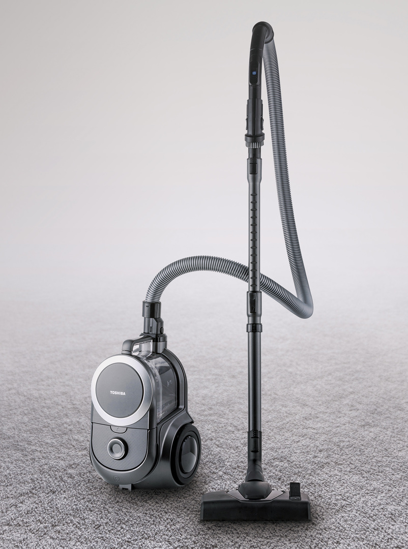The Toshiba Canister Vacuum Cleaner 18C does not seek a sense of power in shape. Its style is subtle and simple, with rounded lines that are more in line with Asian aesthetics. It is also small enough to fit in a cabinet or under a bed, with the wires retracted and the handle folded up to save space. The entire machine is so light that is it easily lifted up the stairs.