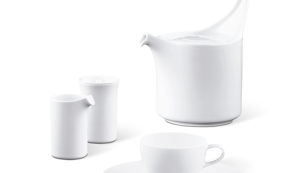 Die Becher Touché strahlen sowohl filigrane Eleganz als auch technische Raffinesse aus. Eine Besonderheit ist ihr Thermoeffekt, der durch die doppelwandige Ausführung zustande kommt. Dadurch halten heiße wie kalte Getränke länger ihre Temperatur. Weiterhin ist ihre Leichtigkeit auffallend – so wiegt der große Becher mit 165 Gramm nur etwa halb so viel wie eine normale Kaffeetasse. Die Becher haben eine matt polierte Außenseite und eine glänzende Innenglasur. Sie sind in drei Größen und zwei weiteren Ausführungen in Weiß und Schwarz mit Relief erhältlich. Diese greifen zwei Motive des chinesischen Horoskops auf: den Drachen und die Schlange.