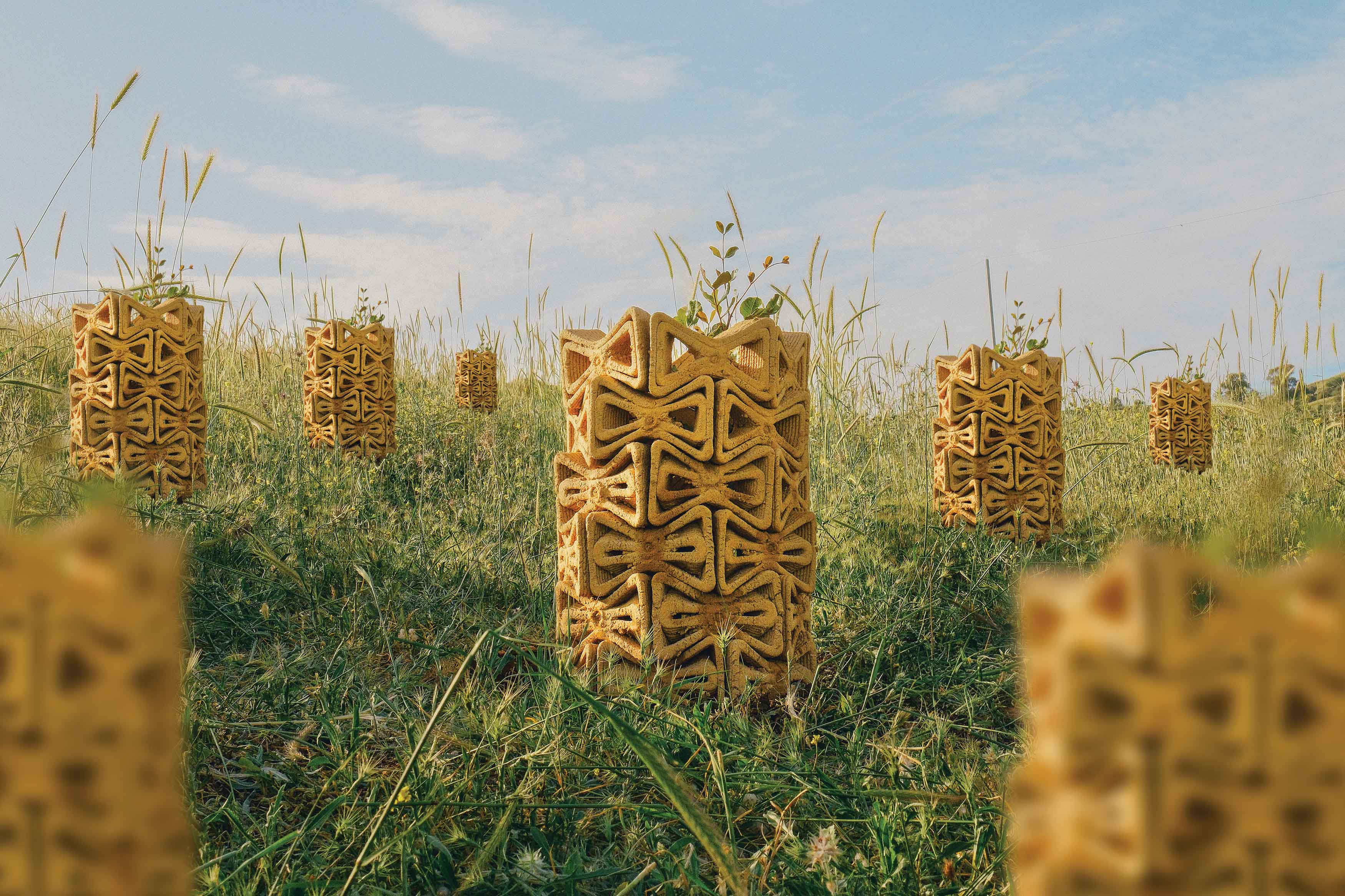 TreeSoil is a 3D-printed earthen structure designed to protect young trees by creating microclimates conducive to early growth. Drawing on ancient agricultural methods that build soil and stone structures, TreeSoil combines computational design and robotic fabrication to create high-performance, biodegradable, site-specific envelopes. To enhance sapling survival rates, local climatic data is used to optimise airflow, solar radiation, and moisture levels.