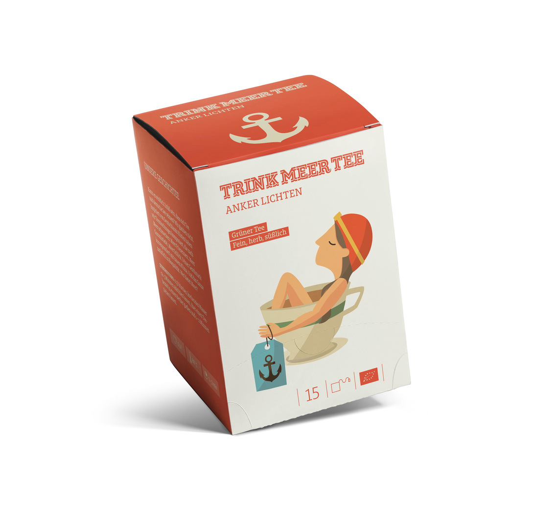 Inspired by Germany’s coasts, these tea blends were created with a taste reminiscent of the sea. Their fine flavours correspond to a rough coastal climate. The packaging design for this organic tea range uses humorous illustrations as the key visual element. The names of individual blends are based on the imagery, rounding off the distinctive look of this tea range. In addition, the matching colours simplify the choice of individual teas, which are available both as leaves in tins and teabags in boxes.