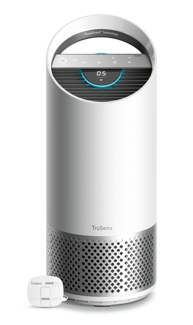 Die schlanke zylindrische Form der Luftreiniger TruSens spiegelt die Bewegung des Luftstroms in ihrem Inneren wider. Der Fernfühler lässt sich in der Nähe des Benutzers platzieren, um zu gewährleisten, dass die Luft genau da, wo es wichtig ist, sauber ist. Alle Funktionen lassen sich intuitiv über das kapazitive Bedienfeld oder die zugehörige Fernsteuerung regeln. Ein farbiges Display zeigt die aktuelle Luftqualität an. Der bidirektionale Luftstrom verteilt die saubere Luft schnell im gesamten Raum. Die Luftreiniger verfügen über einen integrierten Tragegriff, mit dem sie leicht zu bewegen und zu positionieren sind.
