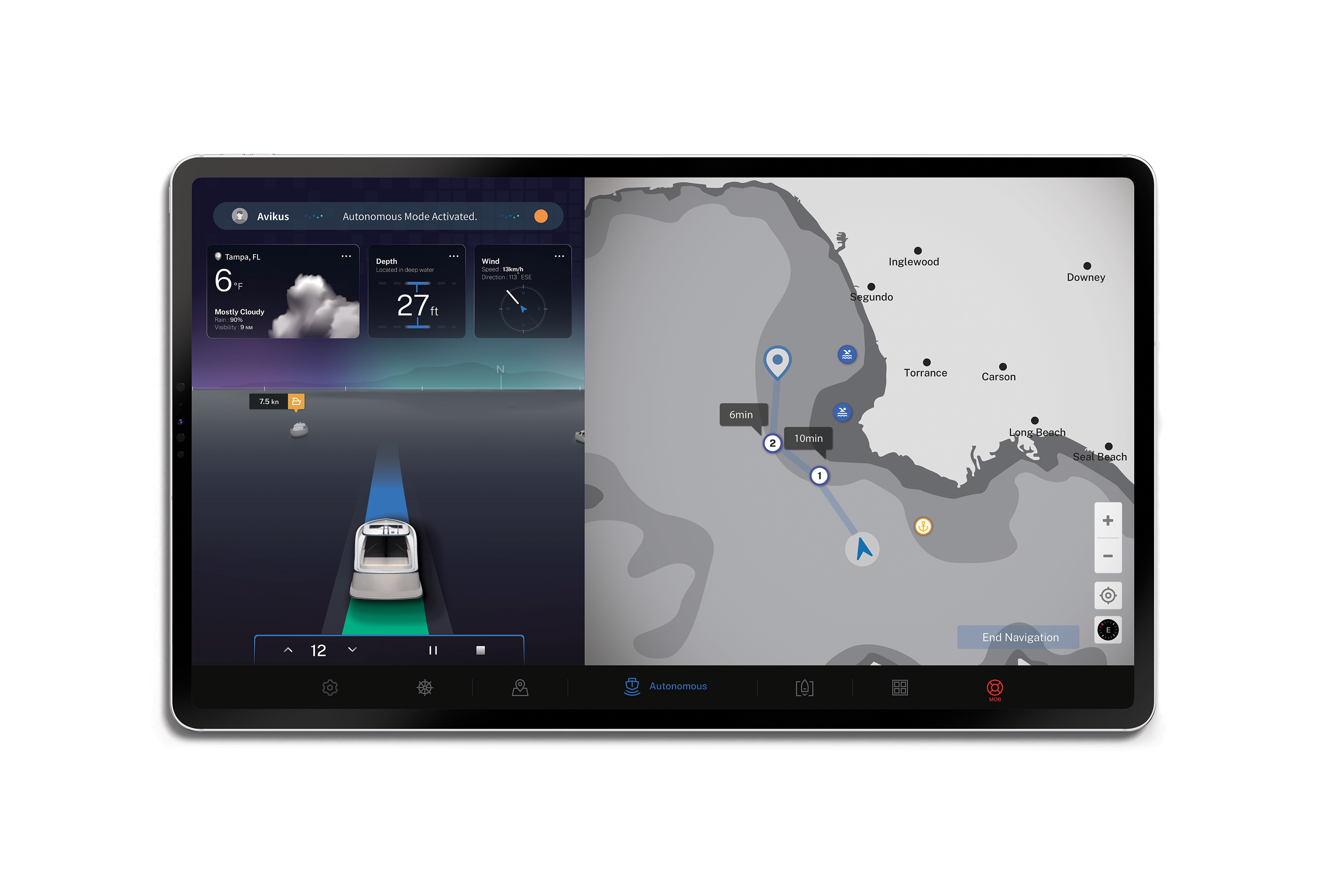 A pioneer in autonomous leisure boat technology, this navigation system minimises user errors by safely assessing complex surrounding situations and conveying essential information. It features a customisable widget interface that adapts to user preferences and provides real-time, intuitive guidance for safe routes through a community platform that collects and shares data.