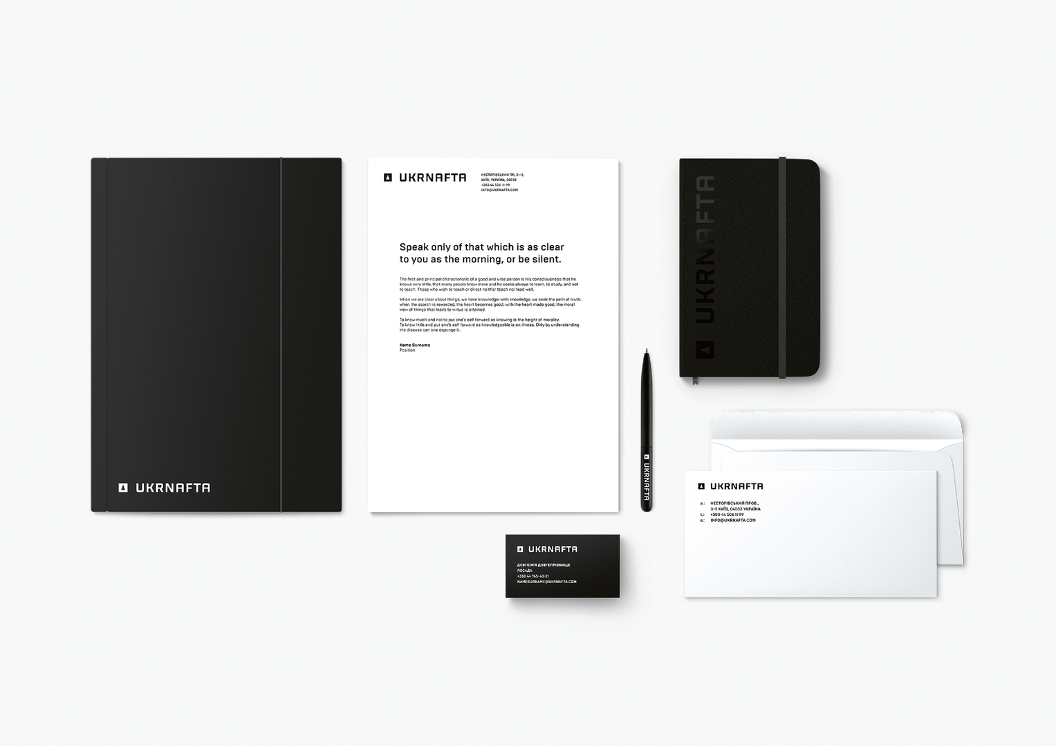 UKRNAFTA is one of the largest chains of petrol stations in Ukraine. The company is the only one to produce and sell petroleum extracted in the country. Consequently, the new logo places the graphic symbol used for oil in cartography at the beginning of the word and figurative mark. Further style-forming elements of the new brand design system have their roots in industrial design, alluding to the production aspect of the company. The basic colours of the brand – black and white – were used as a foundation. The relaunch focuses on technological design rather than decorative elements.