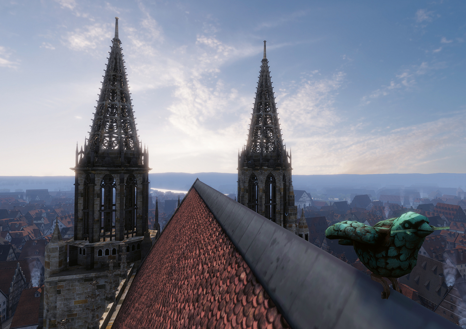 This VR flight simulation invites to experience the historical city of Ulm from a bird’s-eye view. For this, a 3D replica of the old town in 1890 was generated on the computer. In order to achieve a particularly high degree of realism, the developers worked on specific building details that defined the cityscape at the time. 2,000 residential buildings and 6,000 other objects were modelled and staged with natural light and shadow effects. The integration of 3D sounds and real wind completes the realistic flight feeling.