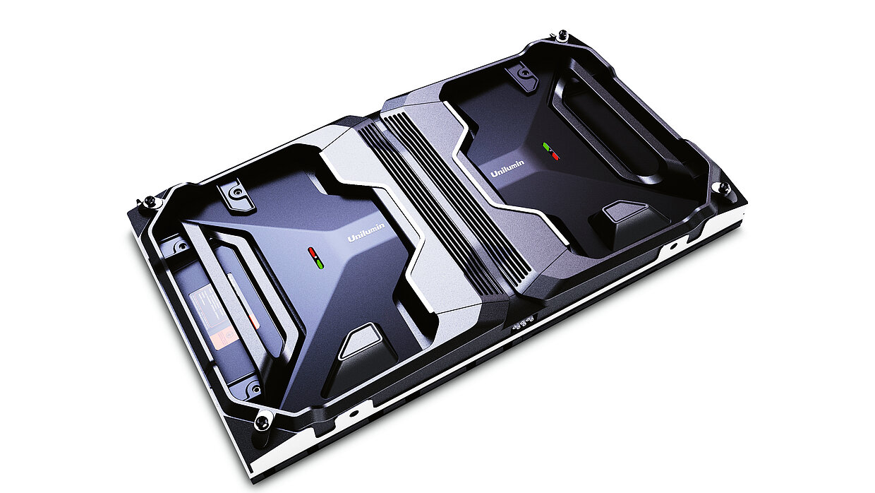 UslimIII O ist ein wetterfestes LED-Displaymodul speziell für den Außenbereich, z. B. zur Konstruktion von Werbetafeln. Um die Haltbarkeit auch bei langfristigen Installationen im Freien zu verbessern, kommt die sogenannte Full-Flip-Chip-on-Board-Technologie zum Einsatz: Die LED-Chips werden dabei in transparentem Kieselgel versiegelt, was die Widerstandsfähigkeit des Produktes erhöht. Das präzise gefertigte Gehäuse aus Druckgussaluminium verbindet Robustheit mit einem markanten, futuristischen Erscheinungsbild.