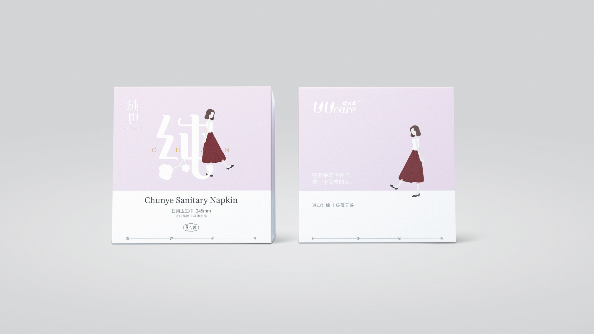 With the motto “Be a simple person in a complex world”, this brand offers sanitary pads made from pure cotton. The core value of the brand has been translated into a clear packaging layout. By focusing on a key visual and a few graphic characters, the design visualises the idea of getting back to basics. Moreover, the packaging features a slightly nostalgic style which aims to resonate with the yearning of many young people to have a simpler life. The harmonious composition matches up to the notion of purity and ease, thus accentuating the selling points for the natural material cotton.