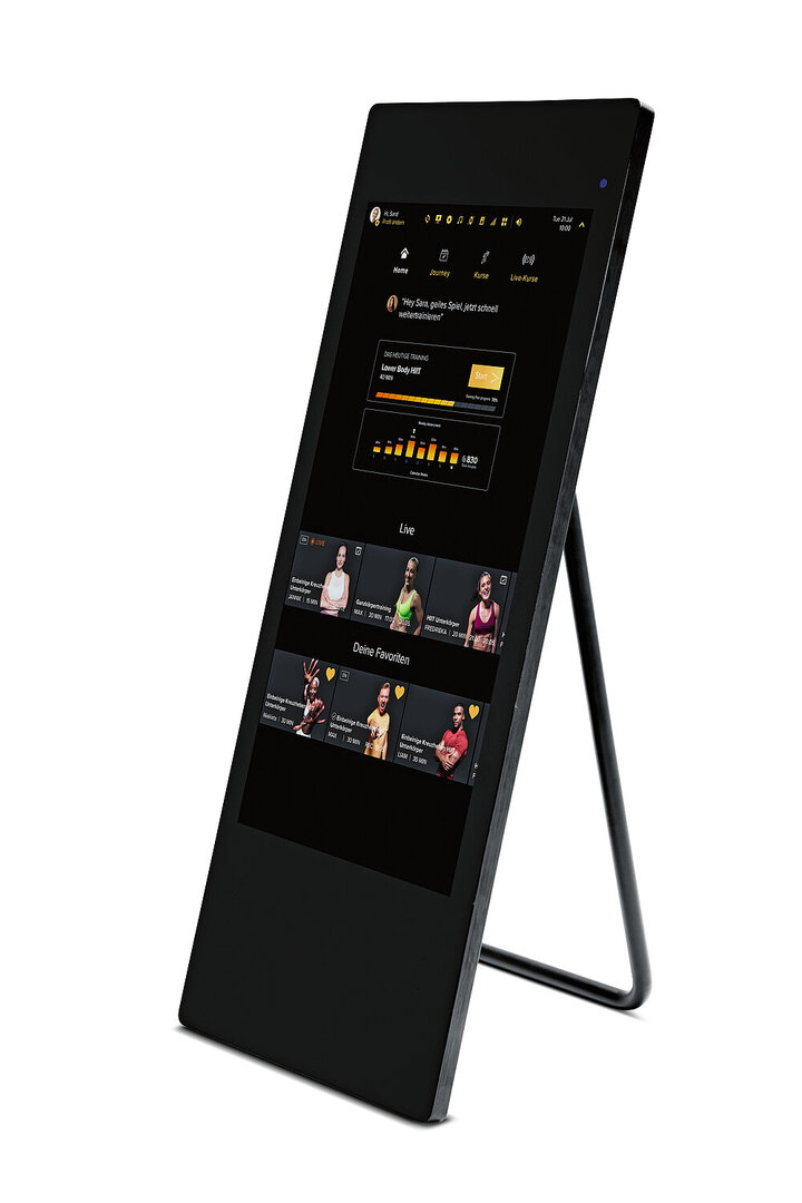 Der stilvoll gestaltete Fitness-Spiegel VAHA überzeugt durch die Vielzahl seiner Trainingsmöglichkeiten und eignet sich hervorragend für Sporteinheiten zu Hause.