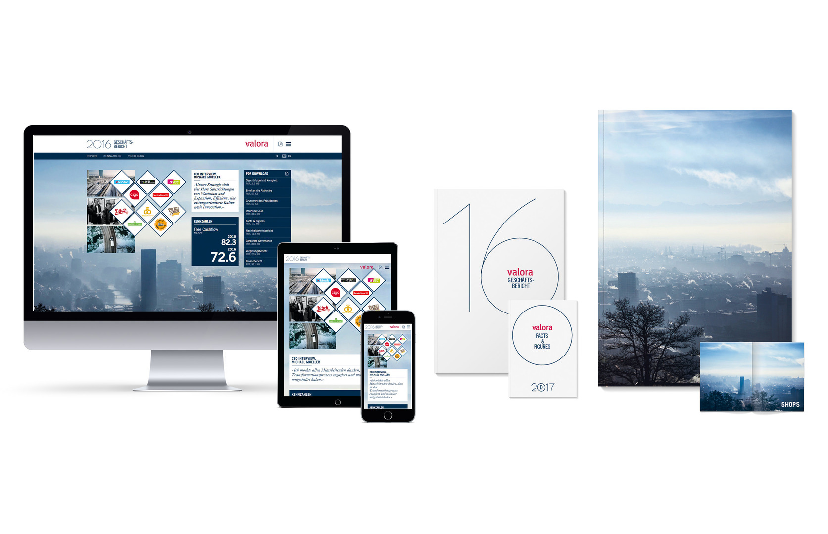 The annual report of the convenience and food services supplier Valora has been published in a cross media format. In addition to the online report, which can also be accessed on mobile devices, there is a printed version of the annual report, a fact and figures brochure, the Valora magazine and a corporate image book. The digital reporting, in particular, ensures comprehensive transparency: there are not only interactive tables and graphics for those interested in the financial details, but the video blog also provides an authentic insight into the company’s activities.