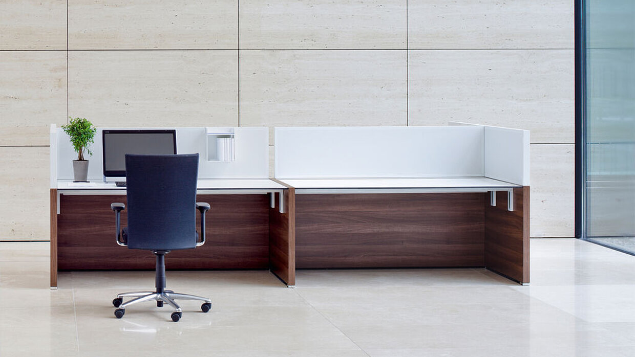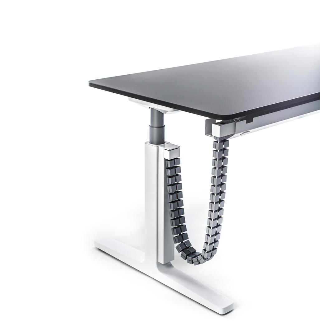 Einen festen Standpunkt haben und dennoch flexibel sein – aus diesem Grundgedanken entstand der Tisch Vario Change. Er erfüllt bestens ergonomische Anforderungen und verbindet Stabilität mit Beweglichkeit und Funktionalität. Das Aluminiumstandbein ist durch den organischen Übergang aus der Horizontalen in die Vertikale charakterisiert. Über dem seitlichen Abschluss, an den sich Anbauteile oder Verkettungen befestigen lassen, scheint die Tischplatte zu schweben. Sie wird mit dem prägnanten kantigen Fuß durch eine höhenverstellbare Rundsäule verbunden.