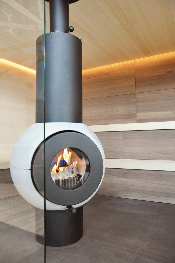 Die Saunakabine Varioline begeistert durch klare Linien. Ihre bis ins Detail ausgearbeitete Gestaltung vereint hochwertige Hölzer mit luxuriösen Glasflächen. Sehr funktional ist im Interieur die Platzierung der Feuerstelle in der Mitte, was diese Saunakabine als Ort des sozialen Miteinanders definiert. Der Nutzer kann sich entspannen und die Schönheit der Formen genießen.